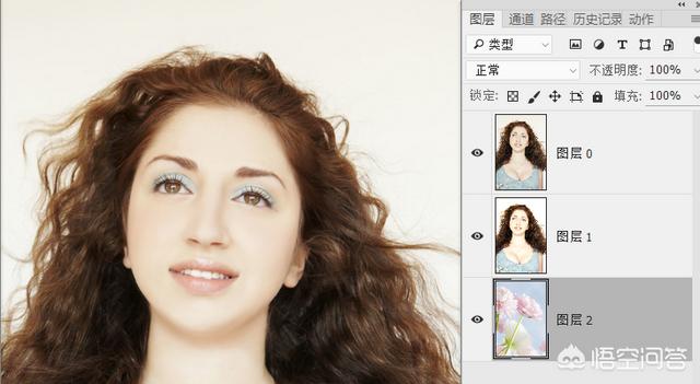 5.把背景素材打开后用移动工具拖拽到人像中去,注意调换图层顺序,素材背景放置最下层。当然如果大小不合适,你需要用自由变换调整大小和位置。