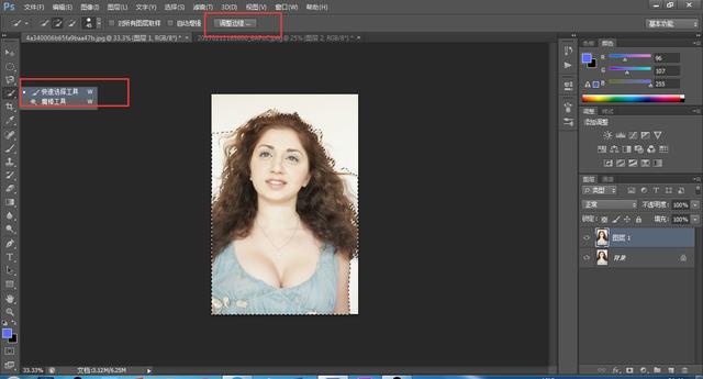 快速选择工具,把人特大致选中