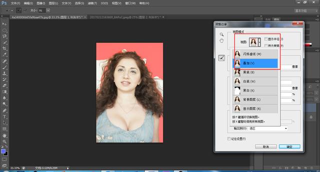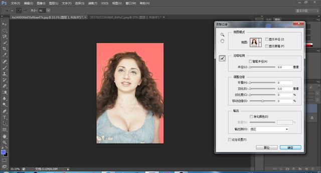 2.调整边缘,勾选智能半径,视图可以选择对比强烈的叠加视图或黑底视图