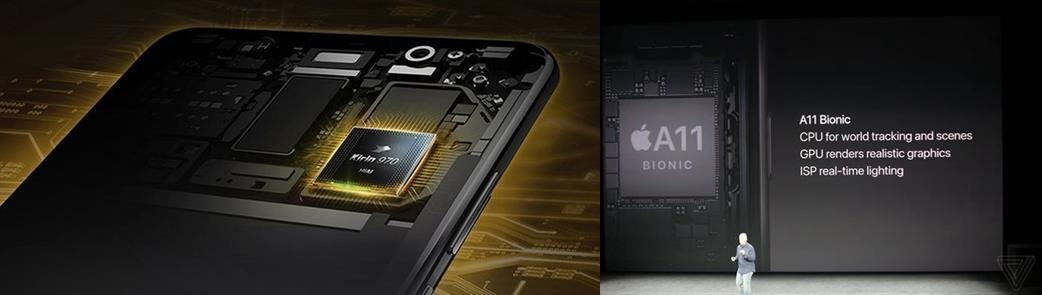 至于处理器及工业设计上面,华为采用了自家的麒麟970处理器,据悉是全球首款AI处理器,而iPhone X采用了最新的A11仿生处理器;在外观上,两者都是全面屏手机,不同的是华为是18:9的全面屏,iPhone X为82.9%。