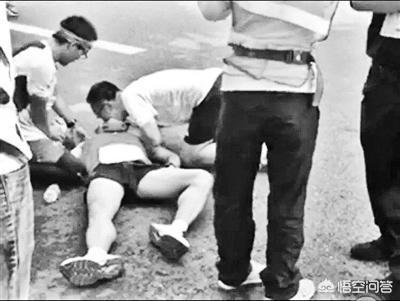 2015年北京马拉松,广州中医药大学第一附属医院骨科医生杨达文跑到38.5公里处,发现一名参赛者昏倒在路上,已有一名参赛者在施救。