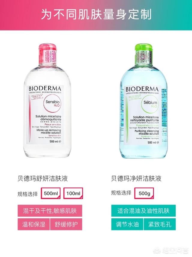 评价里还有很容易过敏的妹子说了,用了完全不过敏!一瓶有500ML大瓶装,做活动的时候都不到50元一瓶吧,很值得囤货!2、法国贝德玛卸妆水 粉水蓝水 500ml 参考价:130左右
