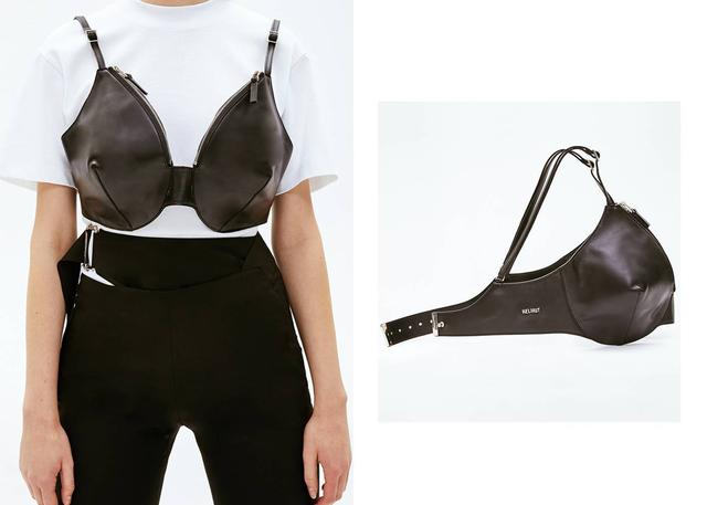 Helmut Lang的皮质的胸衣包,拉上拉链可背可拎,解开拉链能做真实的外搭胸衣,只不过均码的设计充满恶意。