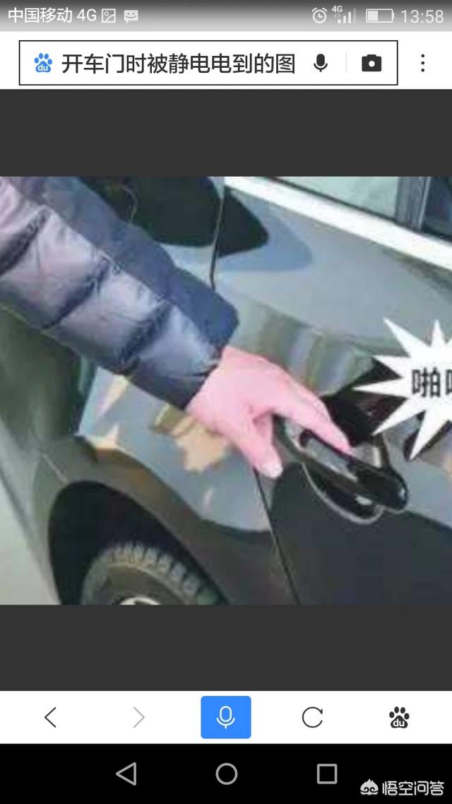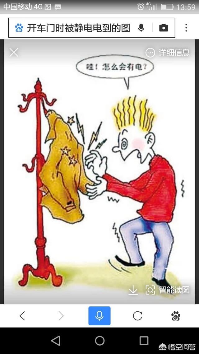 人身体本身就有静电,当接触到车门时会瞬间放电,就有被电的感觉。容易被车门或金属器材电到的人多数是皮肤干燥之人。这样的人多擦一点适合自己的搓手油,尽量使自己的皮肤保持湿润,这样就好能避免被静电电到。再者,当接触车门或金属时先把手润湿或用金属的东西去触一下车门(如钥匙)就能消除静电。或者把手在墙上或别的东西上擦一擦先消除静电,再开车门就不被电到了。少穿化纤之类的衣服,多穿纯绵制品,也能消除静电。我就知道这么多,供友参考。