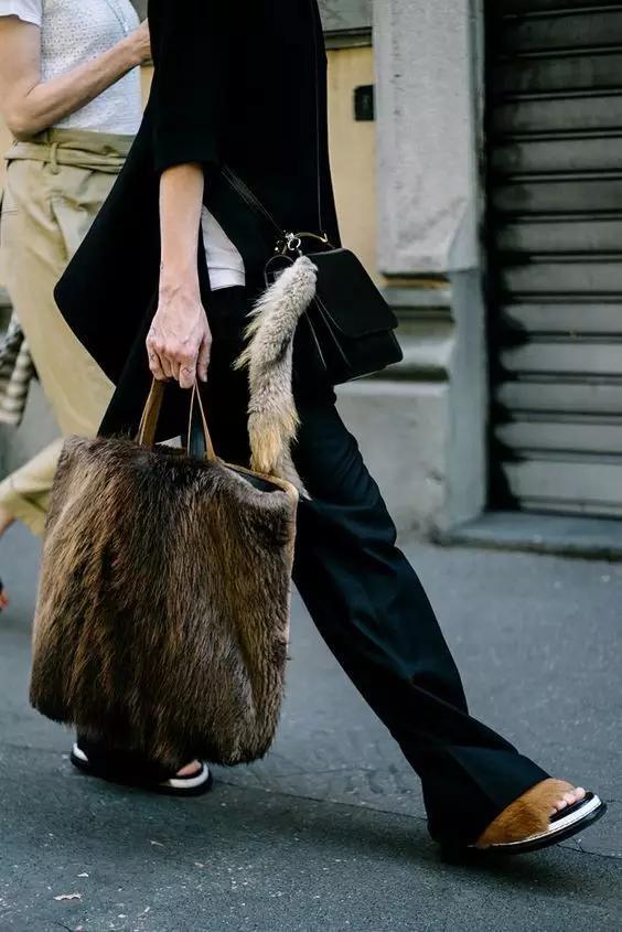 毛皮包包由于也拥有为整体造型画龙点睛的效果,所以一咖在手,感觉就能达到时尚的印象!