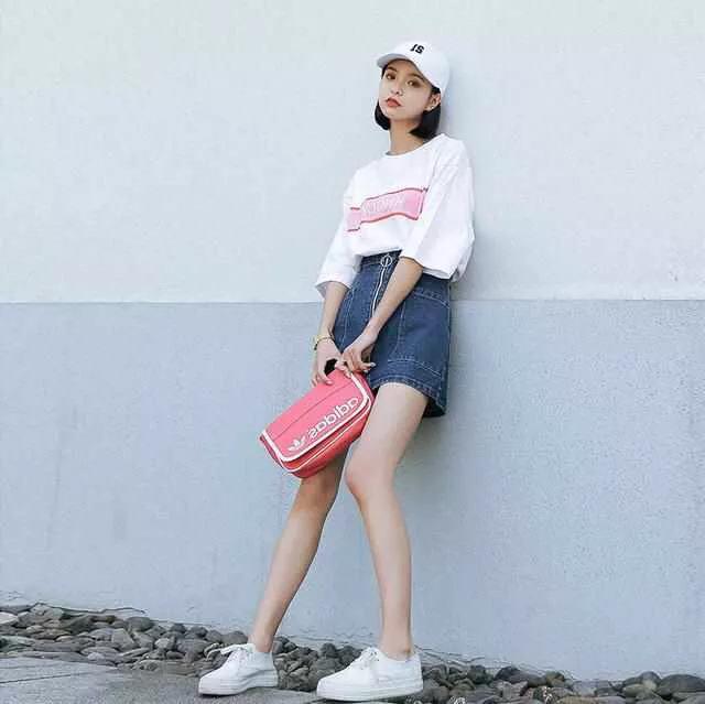 粉色点缀的宽袖白T,尤其衬这个春天。搭配高腰牛仔裙,利落通勤,上脚舒适的运动鞋款,上班通勤,让你走路带风,美出新高度。