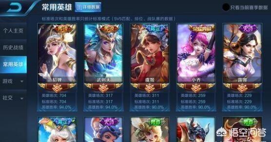 2、这个就比较厉害了,这位大神的5个英雄每个英雄场次都是超过200场的,但是最关键的是他的英雄胜率竟然都是在90%以上,可以说这个场次和这个胜率还是比较恐怖的,想要这么高的场次保持这个胜率不简单的。