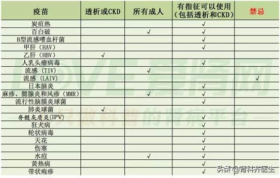 下面这张表格总结了肾友可以接种的疫苗种类。注:肾病几乎所有的疫苗均可以使用,但只能使用“灭活”疫苗,带有“减毒”字样疫苗则需慎重!此外,肾移植后患者免疫系统抑制程度较单纯慢性肾脏病患者(透析或非透析患者) 更严重, 本指南不适用于移植后患者。参阅文末表格。