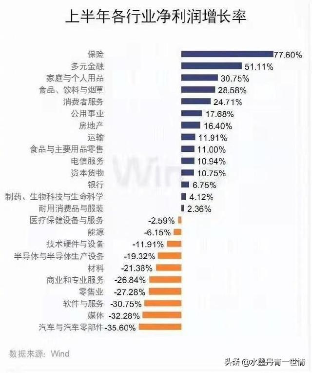 上图是上半年各行业纯利润增长率示意图。可以看出来净利润增长率最高的是保险行业,而净利润负增长率最高的的则是汽车及汽车零部件。而汽车行业净利润严重的下滑,汽车行业也会迎来新的一轮洗牌,面临转型。汽车行业转型,人才需求自然也会产生变化,例如一汽大众虽然不招机械专业学员,但是计算机专业仍然在招收。这点也可以看到未来汽车的走向,智能化、电动化。
