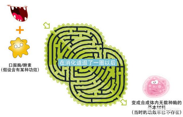接下来我们再来说说酵素是否具有保健效果,从酶来说,酶确实对于生命活动有着巨大的作用,但是酶的本质是蛋白质,口服蛋白质(酶)在胃里后就被胃酸给变性失去原本活性了。所以,不管你吃进去的酶有怎样神奇的功效(假设这种神奇功效是存在的),经过胃酸,胃蛋白酶,各种胰肠蛋白酶,最后大部分都被分解(分解为单个的氨基酸或者几个氨基酸组成的小多肽),原本宣传的功能也早就没有了,起到的作用和我们吃个鸡蛋获得蛋白质并没有什么差别,甚至还不如直接吃鸡蛋呢。