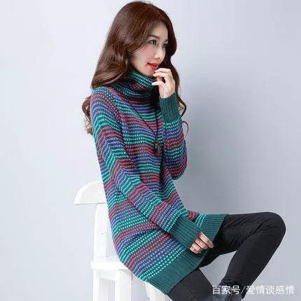 宽松的毛衣藏肉效果不一般,这么看来,高领毛衣似乎和冬天的气氛更配哦~~
