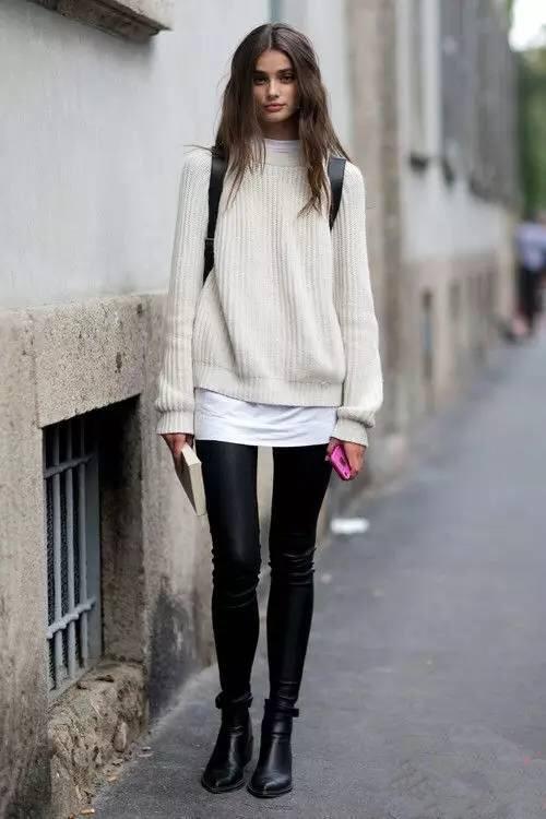 长款毛衣可以搭配皮裤?答案当然是Sure!