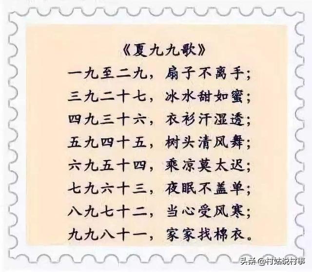 这是因为一般大暑节气处在夏九九的三九和四九期间。说到三九和四九,大家不陌生的是冬天里的数九天。从冬至那一天起,就数上九啦,每九天一个九,总共九个九,其中三九和四九是最冷的时候。而与冬九九相对应的还有一种夏九九,也是从夏至这一天开始,每九天一个九。到了大暑节气的时候,正好处于三九和四九阶段,是一年中最热的日子。