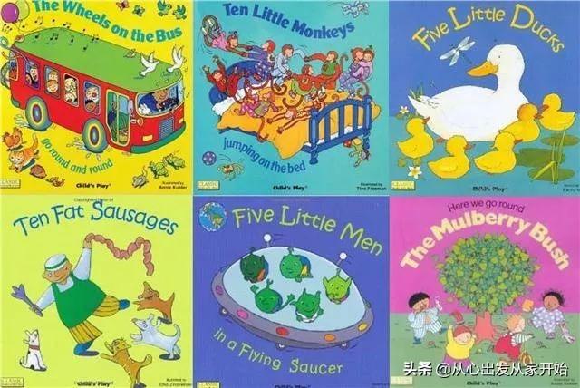 短小就不说了。无论是绘本,还是儿歌,刚开始接触英语的宝宝,我都建议选择语言押韵、重复的素材。重复会加深印象,起到强化的作用。这是语言发育的基石。例如: