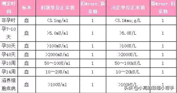 这是各个时间段HCG参考值,有没有怀孕、胎儿有没有异常,将检测结果与参考标准比较就知道。