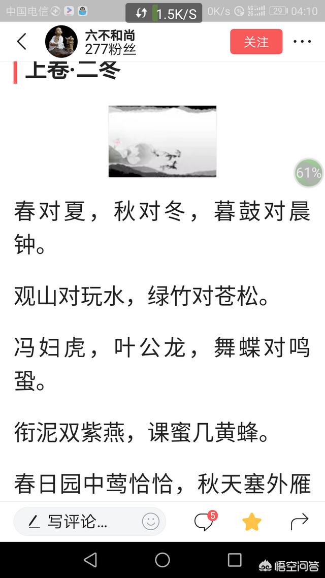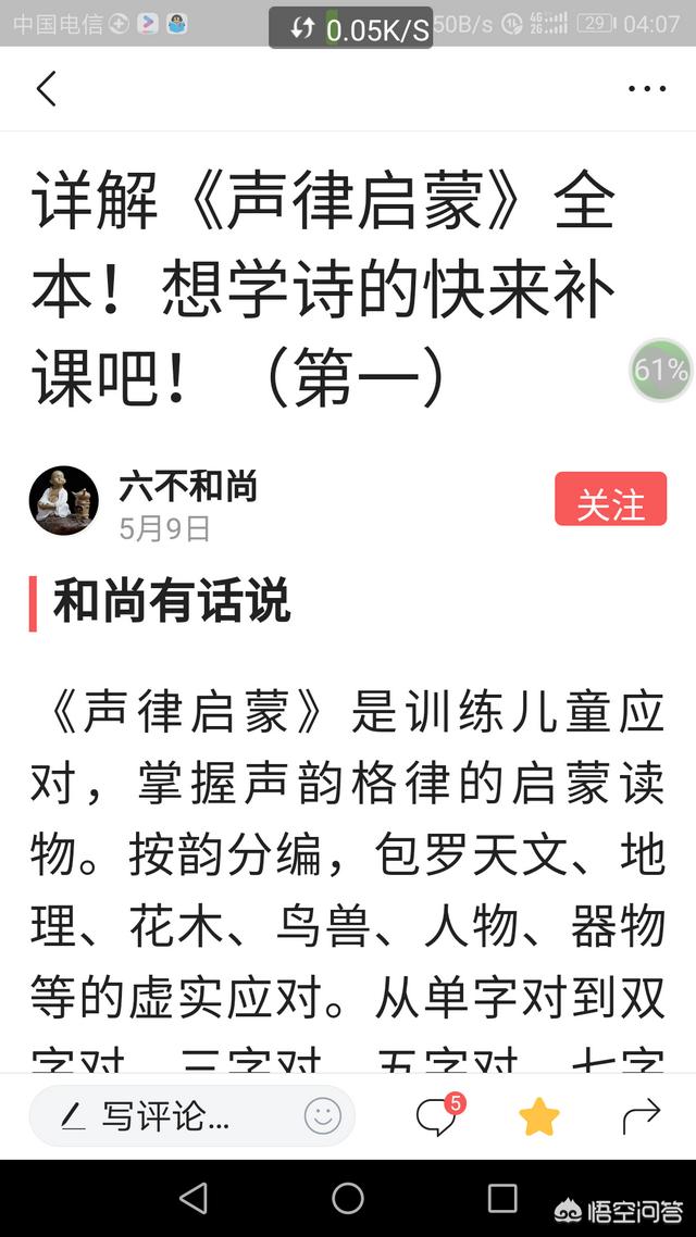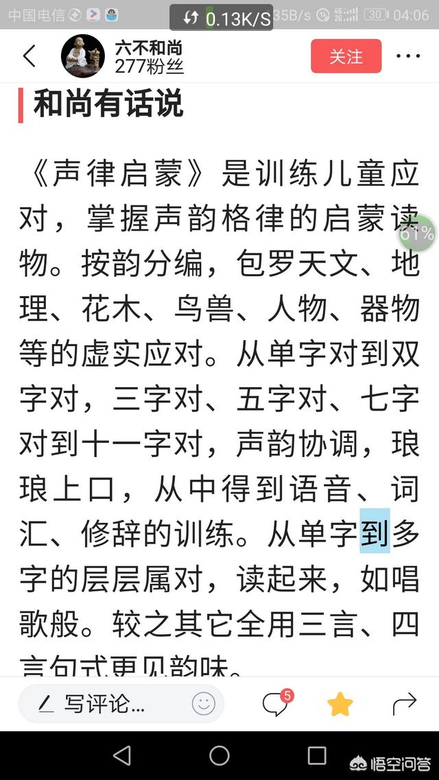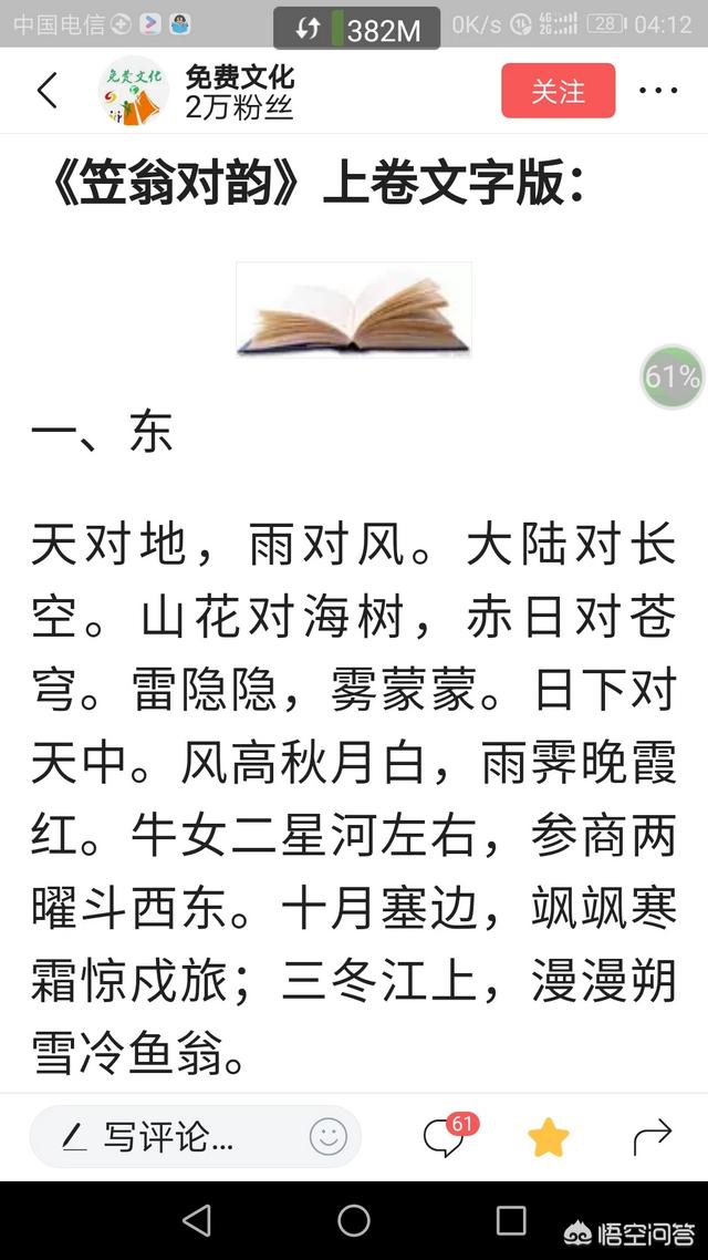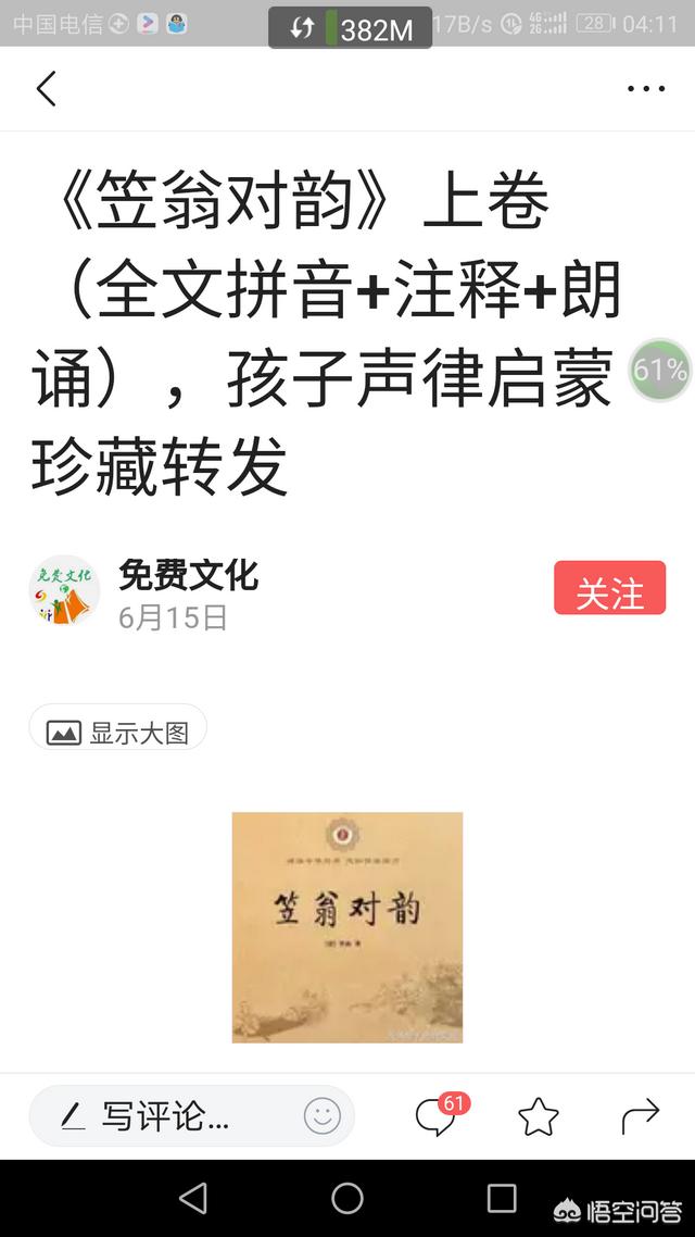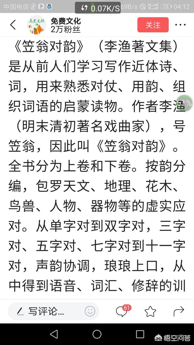 2、关于韵部和平仄,一要勤查阅,二要多诵读。《声律启蒙》和《笠翁对韵》是按照律诗韵部排的,可帮助记忆。