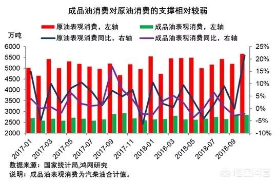 2018年中国原油进口屡破新高,国内原油供应相对充足,但是下游成品油(汽柴煤)消费相对疲软,1、5、9、10月甚至出现负增长,因此国内原油消费对进口量的支撑相对较弱。这主要是因为需求高峰期的远离以及中国经济增长放缓,同时新能源汽车的增长也导致对燃油车的需求减少。