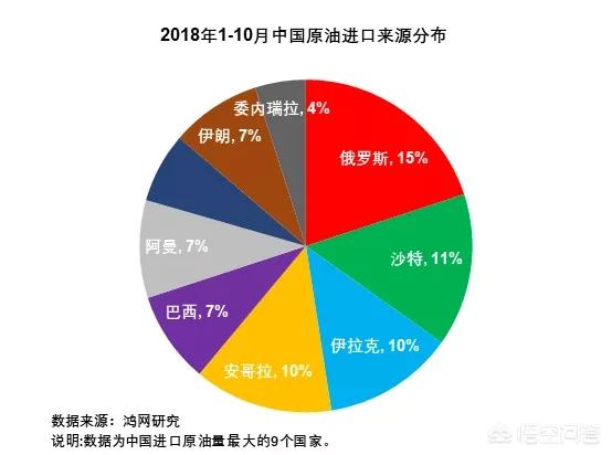 2018年前10个月,2018年前10月中国进口原油约3.36亿吨,同比增加5.9%。其中俄罗斯为中国最大原油进口来源国,在前10月进口总量中占15%,其次是沙特、伊拉克等。