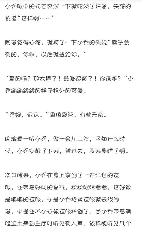 有没有关于小乔和周瑜的甜文分享?