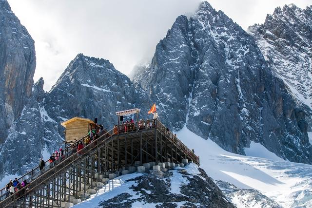 玉龙雪山位于丽江西北,全山13峰,因有冰川,所以峰峰终年积雪不化,如一条矫健的玉龙横卧山巅,有一跃而入金沙江之势,故名“玉龙雪山”。