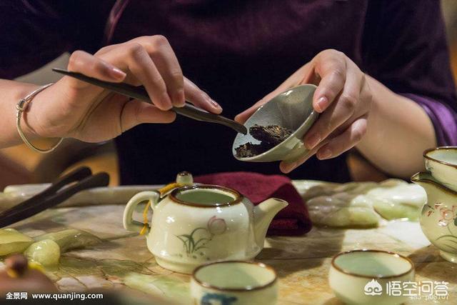 应该用茶匙取适量茶叶,若没有茶匙,可将茶筒倾斜对准壶或杯轻轻抖动,将茶叶倒出。
