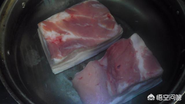 步骤:1、先将整块五花肉上的毛刮干净,然后整块放入锅中绰水(整块放入锅中绰水这样可以使肉吃着不柴),去除血沫