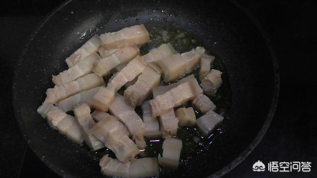3.煸炒五花肉,多出来的余油可以倒出,这样不会太油腻。
