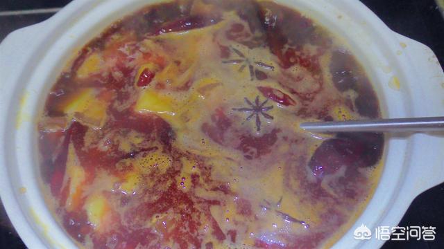第三步:依次下入姜片,干花椒,干辣椒,豆瓣酱,豆瓣酱炒散后下入料酒,随后加入清水,清水以淹没肉块后再加200克左右的水为宜,然后放入小葱结。大火烧开后,加入十三香和鸡精,小火焖煮1个小时。