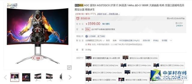 AGON爱攻电竞的AG272QCX专业电竞显示器是今年推出的AGON第二代产品中的一款,它采用了一块2K、27英寸、1800R曲率的曲面的VA高端面板,它的刷新率最高可以达到144Hz,响应时间为4ms,并且支持AMD FreeSync垂直同步技术,非常适合目前的“吃鸡”游戏。