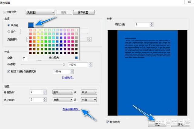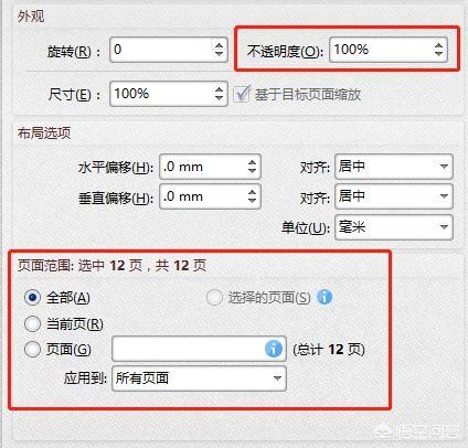 4、接下来设置背景的不透明度以及应用的页面范围。