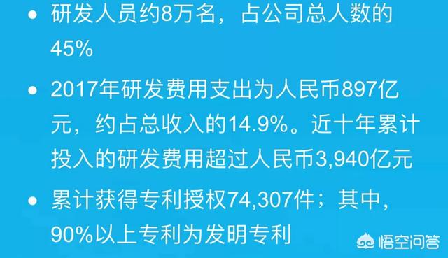 - 资金雄厚。华为每年在研发的投入力度大,仅在2017年就投入了897亿人民币,占总收入的14.9。