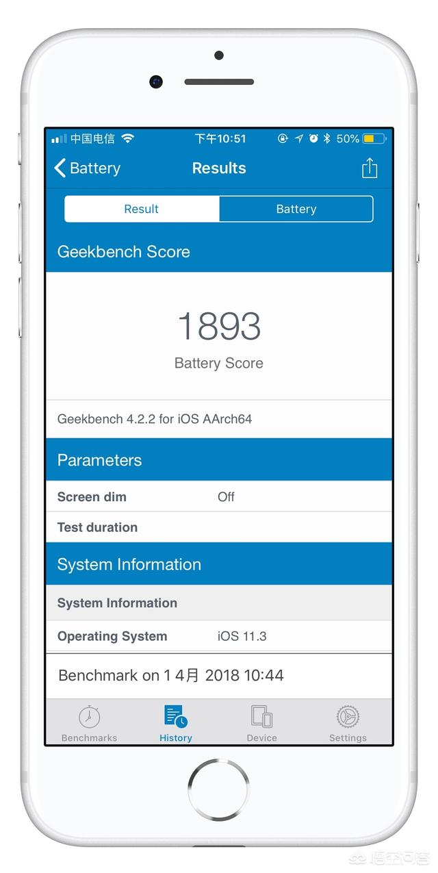 而大家关心的续航问题,我也是很认真的进行了体验并且用 GeekBench 4 进行了测试,测试机型还是我那台 iPhone 8 ,将亮度调整到百分之五十,最终电量耗尽用时 3小时 15分钟,续航跑分为 1893,相比于 beta 6 的1686 有一定的进步。不过考虑到我手上这台 iPhone 8电池容量已经衰减到了 90% ,可以说,在正常情况下,iOS 11.3 的续航相比 11.2.6有略微下降,但总体差距微乎其微。如果你升级后出现了严重的耗电异常,可以尝试进入 DFU 模式在刷机一次,基本上都能解决。