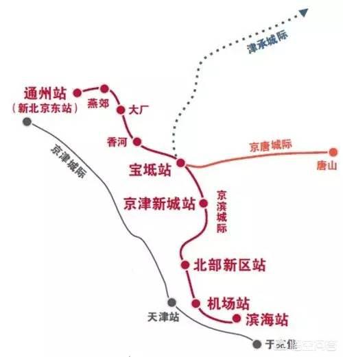 新建的城际铁路线路一路向南,经过天津宝坻区、天津武清区、天津北辰区、天津东丽区、天津滨海新区,此外,作为区域铁路网的重要一部分,京滨城际铁路还将向承德方向延伸,实现与京沈客运专线的衔接。