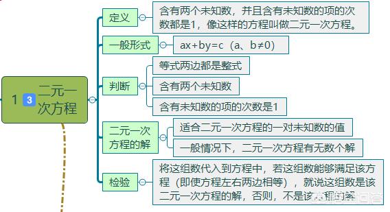 (一)二元一次方程组的四个常考知识点。(1)二元一次方程的定义,只含二个未知数,未知数的最高指数是1的整式方程;(2)会求二元一次方程的正整数解和非负整数解;(3)解二元一次方程组,解方程组有加减消元法和代入消元法;(4)方程组应用题。