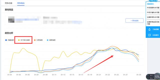 具体店铺生意参谋-竞争-竞争配置-竞争商品-查询竞品,把看到的别人的款链接复制过来,就可以看到款的趋势了!