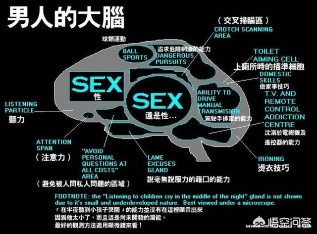 这是从结构生理上来看待的第一差别。其次的差别就是大脑左右部分掌管功能差异在男女中的体现。