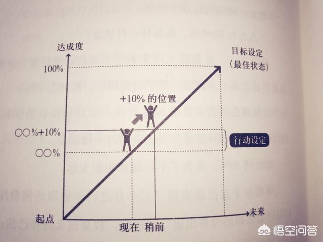 在《实用性阅读指南》中,作者说,当你觉得自己只有50%的实力和状态的时候,那就把目标设立在实际状态+10%,也就是说以60%为最终目标,而不是完美的100%。