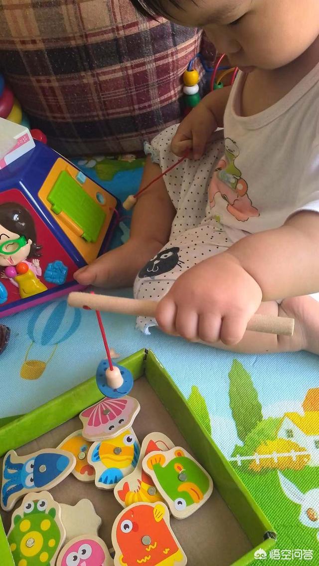 2、钓鱼类玩具。绳子很会晃,宝宝需要控制好鱼竿晃动的速度,慢慢地靠近,才能把小鱼钓起来哦。