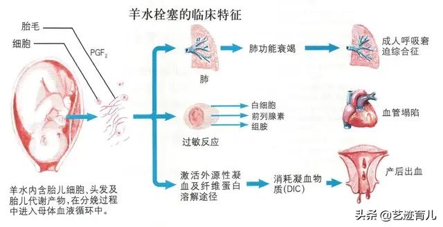 羊水栓塞之所以那么可怕,是因为孕妈里的羊水的胎脂、胎粪进入母体后,触发了母体的免疫系统被激活,在羊水进入之后,孕妈的毛细血管扩张,血浆渗出,导致了孕妈血压下降,产生过敏性休克。