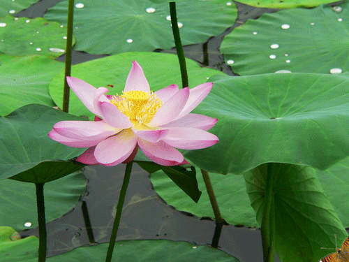 岸上垂下柳丝美,湖面溅起涟漪碎