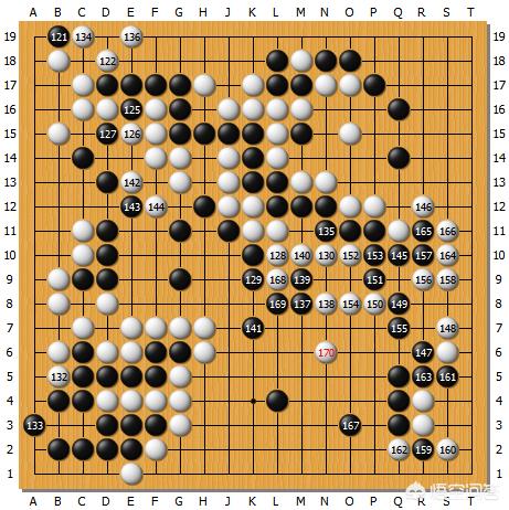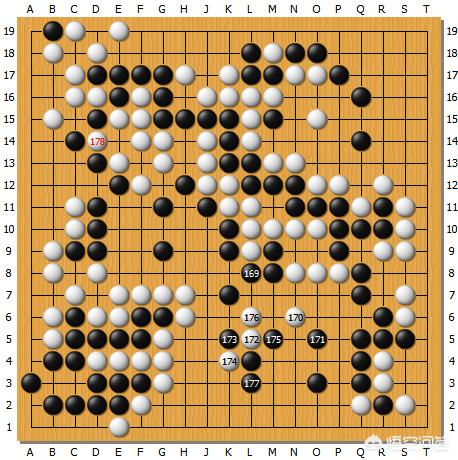 白大块往右边是连不上的。但是柯洁142、144吃一子,这里落个后手有深意。如此白随时可以D14扑入开劫回家。而黑要攻白获取利益,开劫的主动权就落入白手了。AI也昏头了,搞不清白要干什么,认为黑占优有机会。黑棋攻击白右下有收获,但是白170跳时,AI终于发现,黑的毛病太多,顶不住白开劫的攻势,给白的胜率超过70%。但是从人的角度来看,如果黑攻不出东西,应该是没有什么胜率可言的。也许胜负早就决定了。