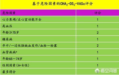 有房颤的患者不妨对着下表看看,自己评几分?