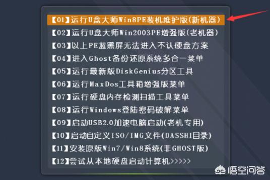点击第一个选项,运行U盘大师PE装机维护。