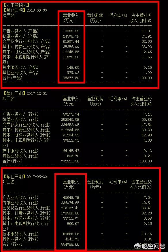 - 再看一下乐视网2018年的半年报,上半年亏损11亿,上半年营收还不足10亿,其中将近6亿的收入是会员收入。对比一下2017年半年报的乐视网经营分析,去年同期乐视网的营收是55亿元,终端业务收入和会员业务收入占比接近80%,也就是说时隔一年后,乐视网的会员收入和终端业务收入一直在下降,乐视的电视、会员等个人认为已经接近停止,包括会员业务还能有6亿元收入,和大多数存量客户在购买。
