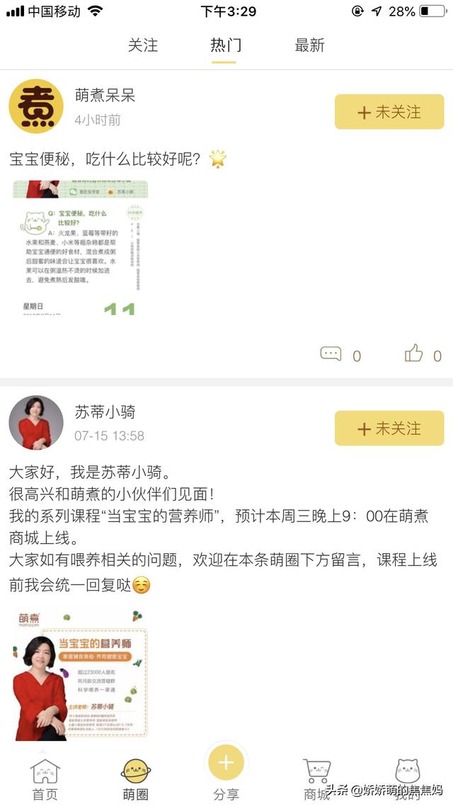 我家宝宝七个多月了,从六个月添加辅食开始就时常参考萌煮上面的餐单,该款app上也有许许多多的育儿知识供我们学习,宝妈社群也很方便妈妈们集思广益!