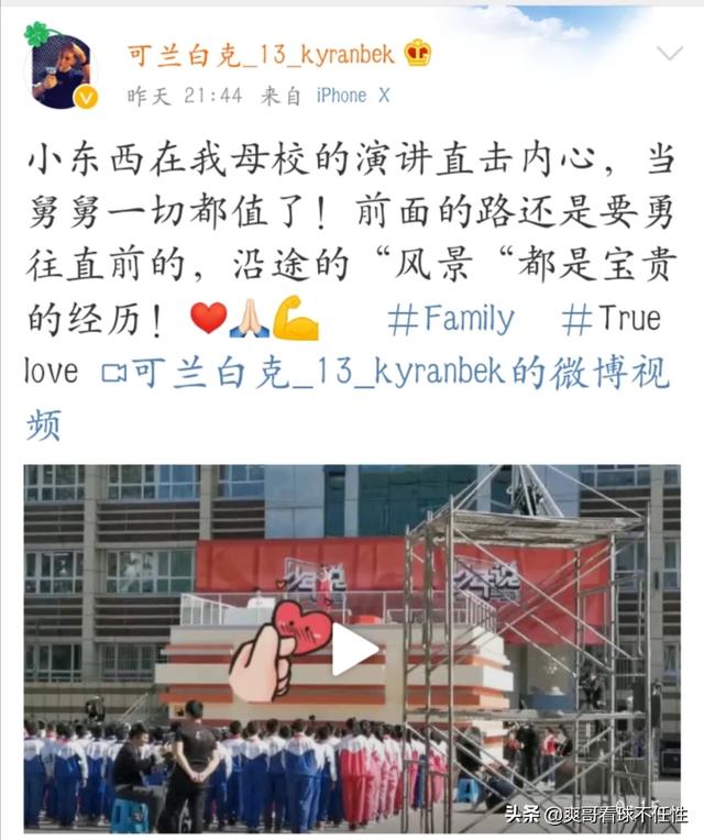 最近可兰白克在自己的社交媒体上发布了一段自己外甥女发表演讲的视频,小姑娘在可兰白克的母校发表了演讲并且说自己看过舅舅的比赛,希望舅舅能够继续努力。