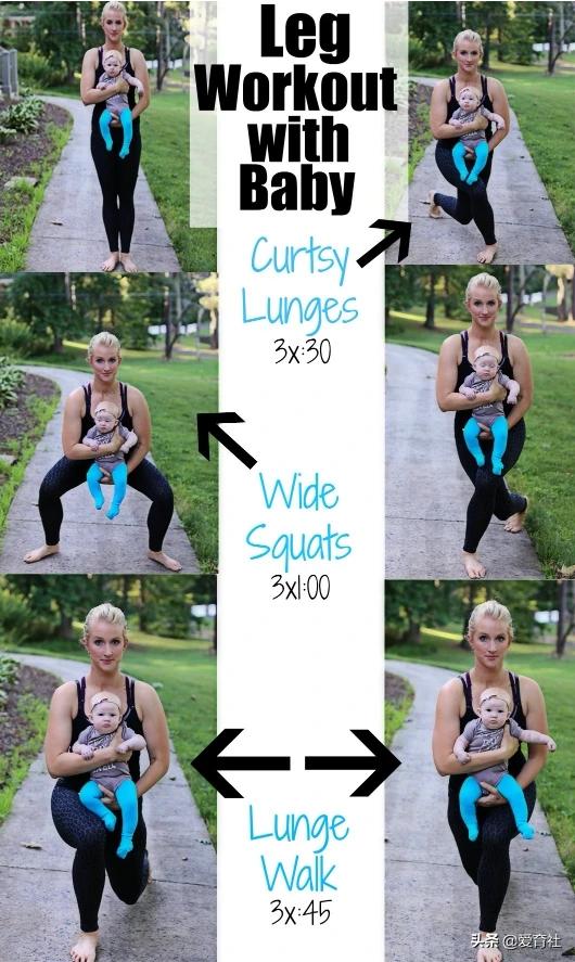 腰部运动,如第一张图所示。背部和下肢屈伸运动,不带宝宝也可以做,如图2所示。42天以后,基本身体已经恢复,就可以做各种运动了。
