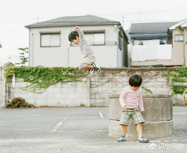 如果你看过滨田英明的作品,就能看到他拍的那两个小孩儿有很多场景。除了居家拍摄的场景,还有很多到公园等地方玩耍的场景。还有背景是纯色天空的场景,两个小孩儿自由自在的玩耍。