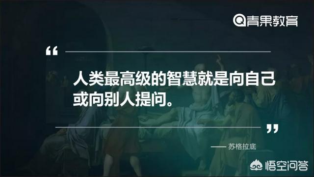 苏格拉底说:“人类最高级的智慧就是向自己或向别人提问。”他就是一个特别善于提问的人。后来很多西方的大学都用他这种方法来教学,称之为“苏格拉底法”,用得最好的,是哈佛大学商学院。