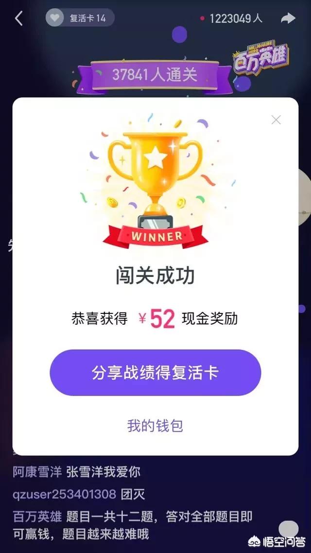 1月8日晚九点场奖金数额是200万,小编也参与了其中,发现题目简单了不少,最终有三万多人答对12题,平分200万,小编也是答对了12题,分到了52元。